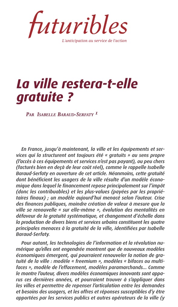 La ville restera-t-elle gratuite ? Revue Futuribles