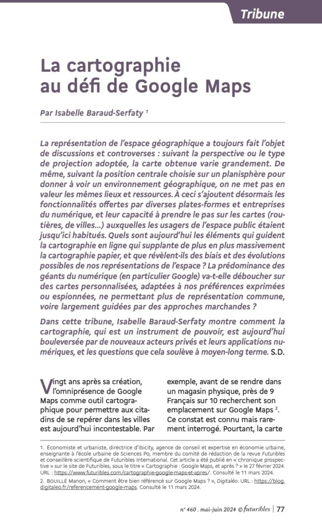 La cartographie au défi de Google Maps [Futuribles] Téléchargement de l’article La cartographie au défi de Google Maps, paru dans la revue Futuribles de mai-juin 2024.