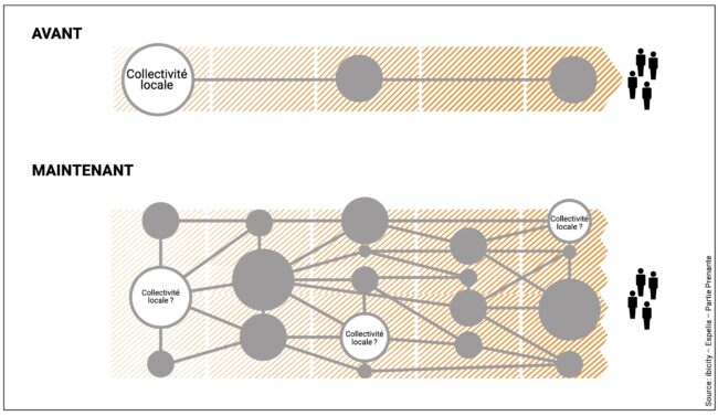 Les collectivités au défi de la gouvernance des écosystèmes Sous l’effet des transitions numérique et écologique, le paysage des acteurs de la fabrique urbaine s’organise sous la forme d’« écosystèmes urbains ». 3 caractéristiques : multiplicité d’acteurs hétérogènes et interdépendants ; brouillage public-privé ; caractère mouvant et incertain. Lien vers l’étude où figure ce schéma : ici. Lien vers…