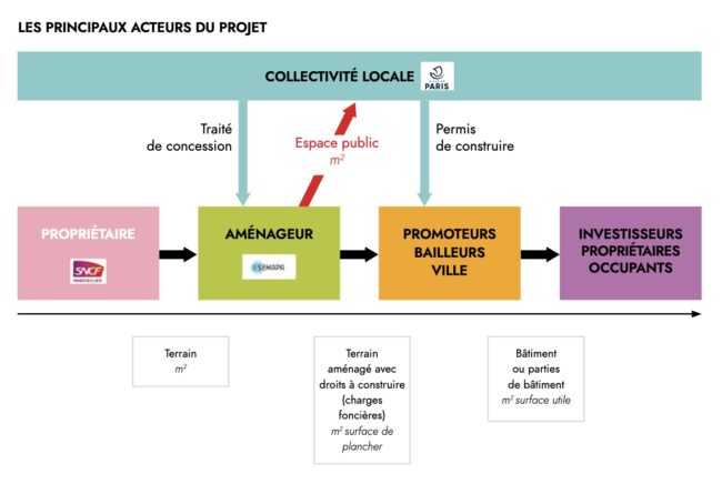Schéma des acteurs du projet urbain Ce schéma réalisé pour la présentation des enjeux financiers de la ZAC Bercy Charenton devant le Comité Citoyen du 5 juin 2021 présente les principaux acteurs de l’opération.
