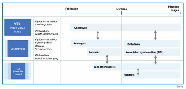 Dans notre intervention pour l’EPFIF (cf. notre billet précédent sur le péri-urbain), nous avons proposé un schéma sur les modalités de financement des espaces et équipements communs : Celui-ci nous a été en partie inspiré par un article très intéressant de Renaud Le Goix de 2014 : « Financiarisation, crise et prix immobiliers : le lotissement…